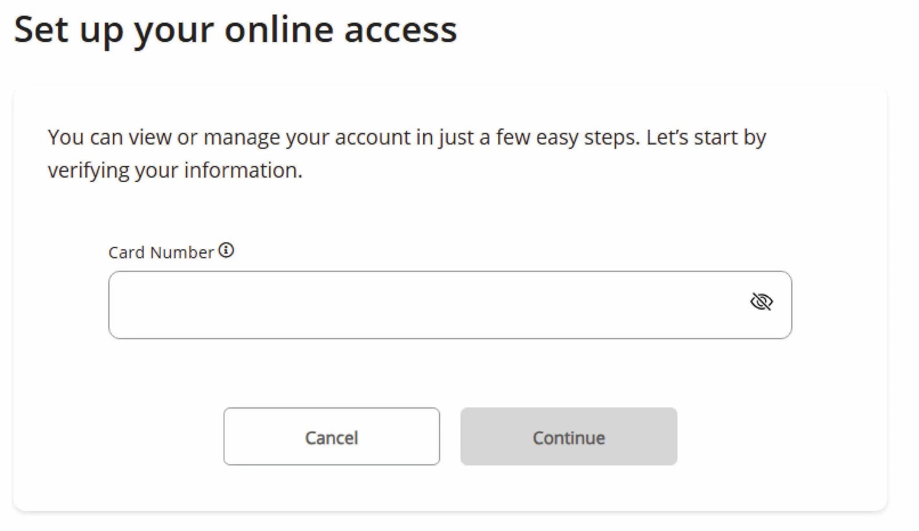 8. Type in your card number and click continue